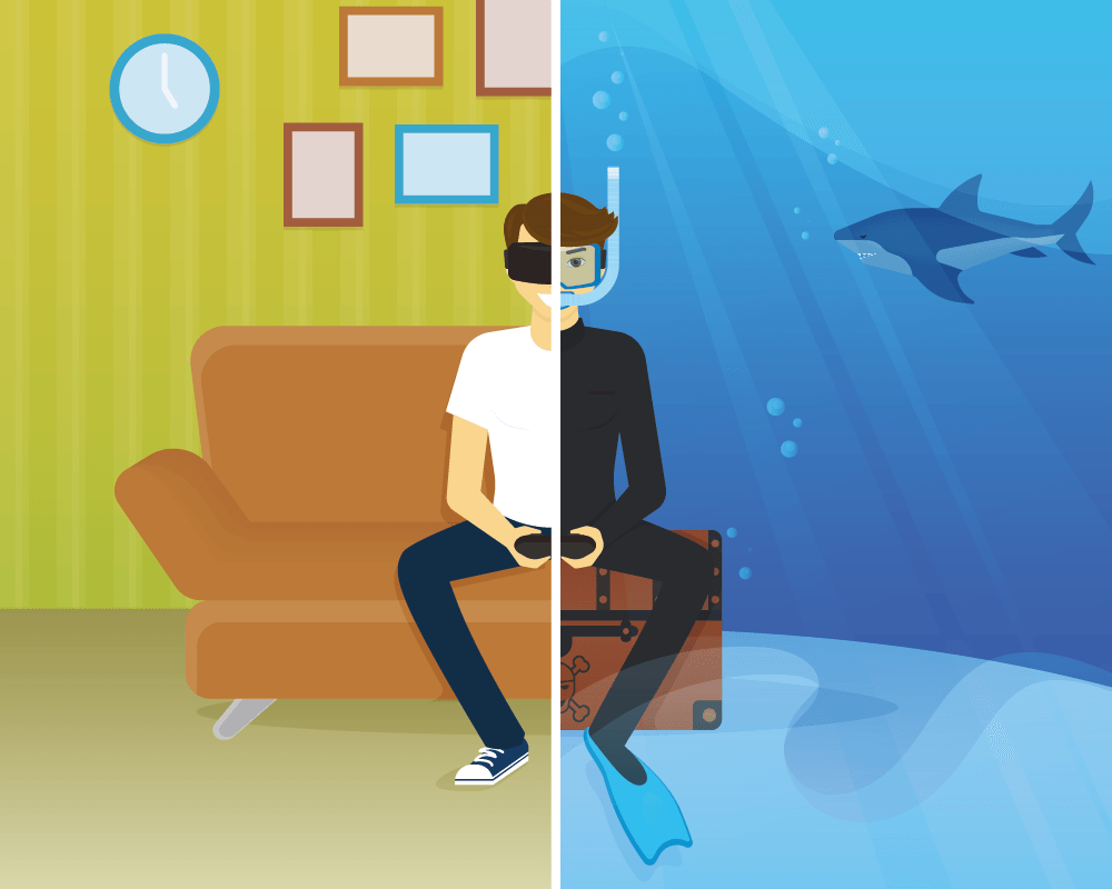 Sanal gerçeklikte esas amaçlanan nokta, sanal gerçeklik kaskını taktığımızda kaskta (yada gözlükte) bulunan ortama adapte olup gerçekte bulunduğumuz ortamı unutmaktır. Sanal gerçeklik ile hissedilen her şey bilgisayar tarafından yaratılmış üç boyutlu dünyadır. Yapay olarak oluşturulan ortamda kullanıcı gerçek dünyanın devre dışı kaldığına ikna olur.